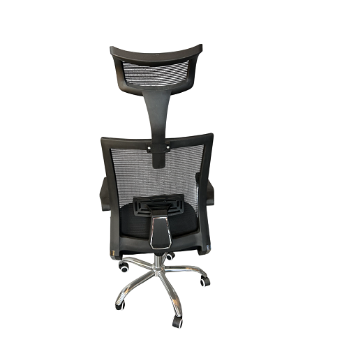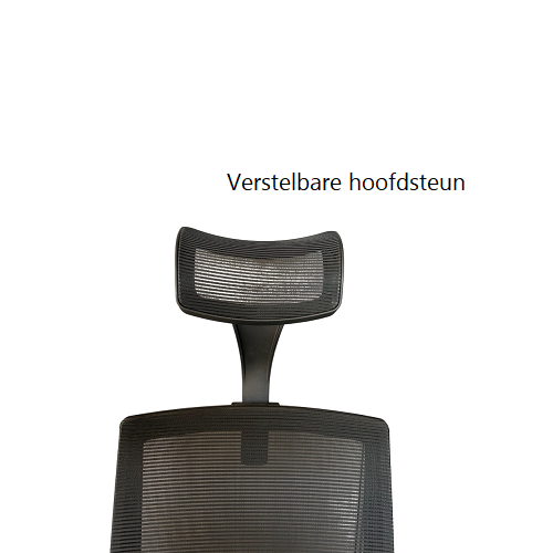 De zitting en rugleuning zijn bekleed met ademende stof en hoogwaardige bekleding in stijlvol zwart. Dit zorgt voor een nette, professionele uitstraling én voor optimaal zitcomfort, zelfs bij langdurig gebruik. De rugleuning volgt de natuurlijke kromming van de wervelkolom en biedt ondersteuning waar dat nodig is. De geïntegreerde hoofdsteun is verstelbaar en ondersteunt nek en hoofd, wat spanning en vermoeidheid helpt te voorkomen.