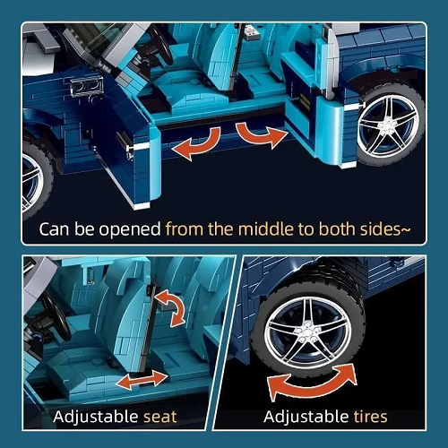 De Cullinan Luxe Auto bouwset is een gedetailleerd model van de Rolls Royce Cullinan. Het bestaat uit 1.882 onderdelen. Het model heeft verschillende beweegbare delen, zoals een schuifdak en deuren. De voorkap kan worden geopend, zodat je de motor kunt bekijken. Ook de stoelen zijn verstelbaar, net als de wielen. Dit maakt het model zeer realistisch en interactief.