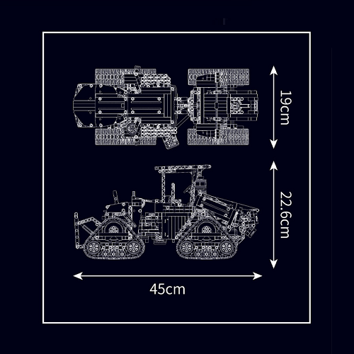 De Mould King 18020S is een gedetailleerd en indrukwekkend model van een tractor, bestaande uit 1698 onderdelen. Met een lengte van 45 cm biedt dit model een volledig op afstand bedienbaar aandrijf- en stuursysteem, aangedreven door een oplaadbare batterij met hoge capaciteit, wat zorgt voor urenlang interactief speelplezier en een realistische ervaring.