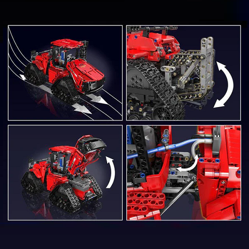 De Mould King 18020S is uitgerust met 2 middelgrote motoren, 1 extra grote motor en 1 grote motor voor maximale prestaties. Dankzij deze motoren heeft de tractor de kracht om krachtige bewegingen te maken en realistische interactie te bieden. Bovendien beschikt het model over 3 pneumatische accessoires en luchtblazers, die de ervaring verder verbeteren door extra realisme toe te voegen.