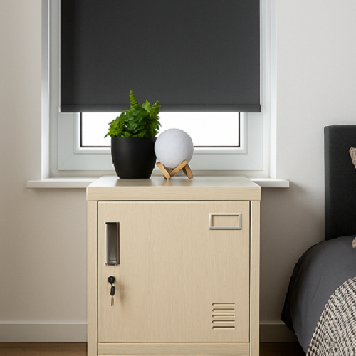 De afmetingen van 45x45x45 cm maken dit nachtkastje compact, maar verrassend ruim van binnen. Achter het metalen deurtje met ventilatiegleuven en een uitsparing voor een label vind je voldoende opbergruimte voor boeken, opladers, of andere persoonlijke items. De kast is voorzien van een stevig slot met sleutel, zodat je waardevolle spullen veilig kunt opbergen.