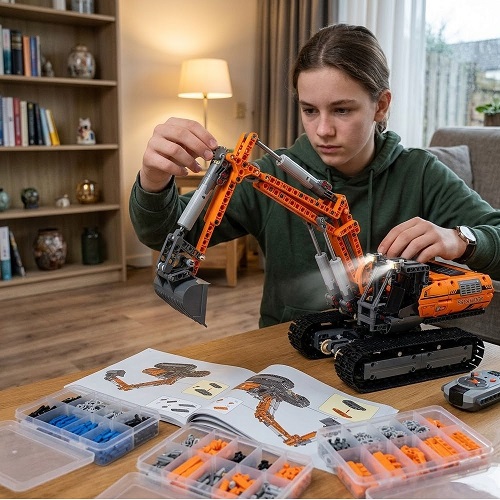 Wat deze set echt bijzonder maakt, is de bestuurbare functie. Met de meegeleverde afstandsbediening kun je de graafmachine laten rijden, draaien en graven, net zoals een echte graafmachine. Dit voegt een extra dimensie van interactie en plezier toe aan je creatie.